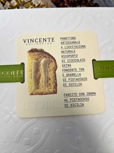 Panettone ricoperto di Cioccolato fondente 70% e Pistacchio farcito con crema di Pistacchio